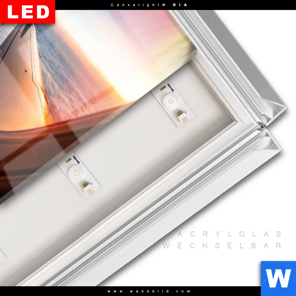LED-Glasbild mit austauschbarem Acrylglas-Druck (Wechselbild)