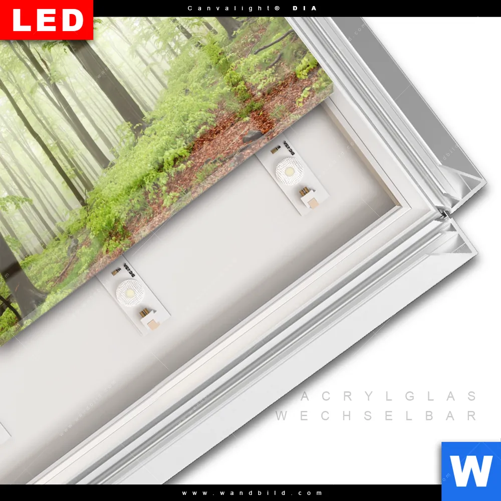 LED-Glasbild mit austauschbarem Acrylglas-Druck (Wechselbild)