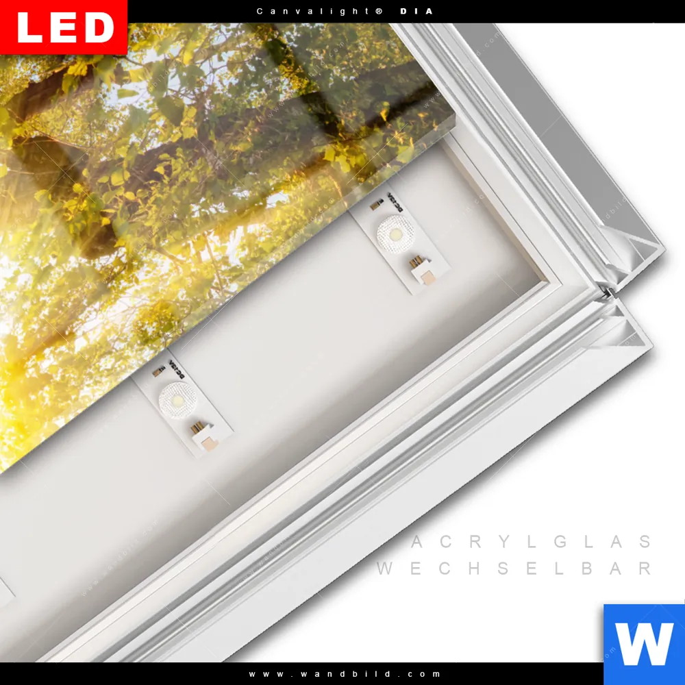 LED-Glasbild mit austauschbarem Acrylglas-Druck (Wechselbild)