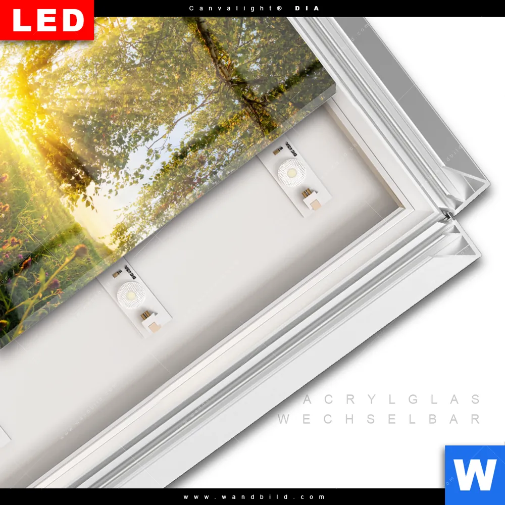 LED-Glasbild mit austauschbarem Acrylglas-Druck (Wechselbild)