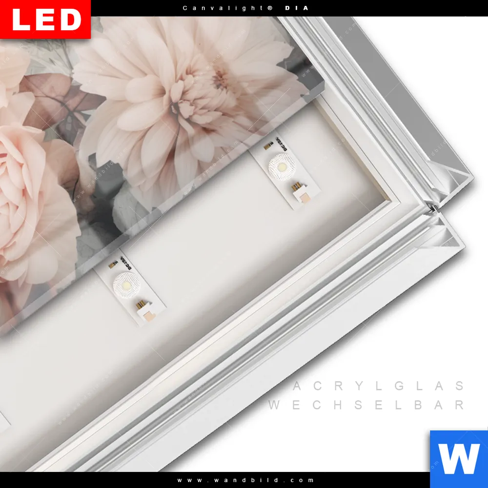 LED-Glasbild mit austauschbarem Acrylglas-Druck (Wechselbild)
