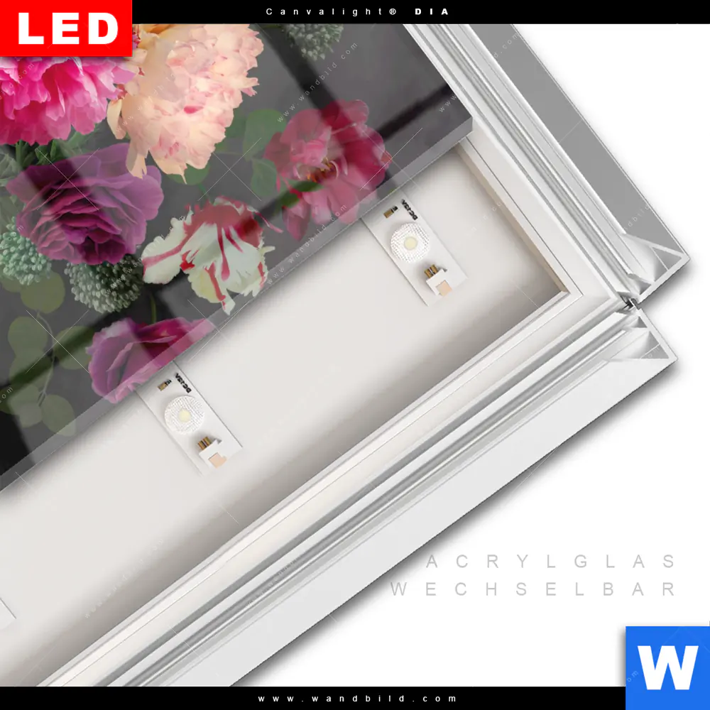 LED-Glasbild mit austauschbarem Acrylglas-Druck (Wechselbild)