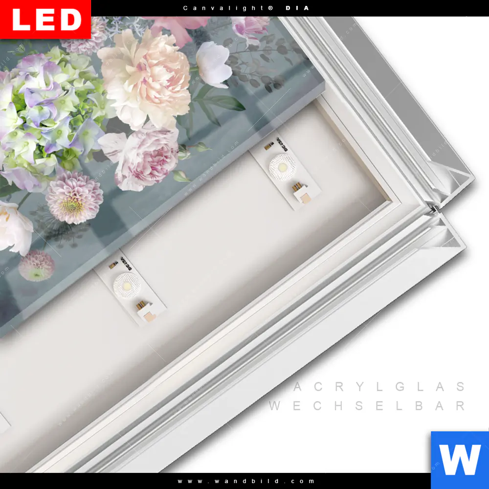 LED-Glasbild mit austauschbarem Acrylglas-Druck (Wechselbild)