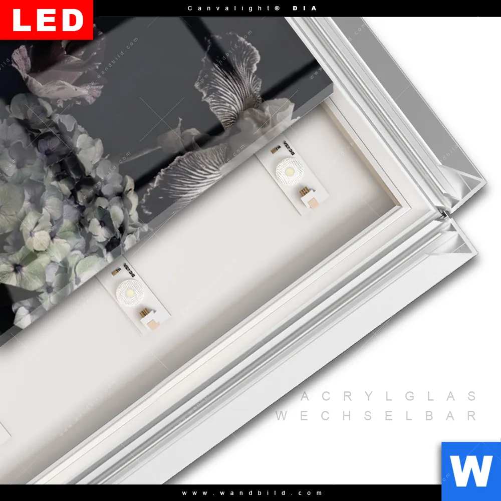 LED-Glasbild mit austauschbarem Acrylglas-Druck (Wechselbild)