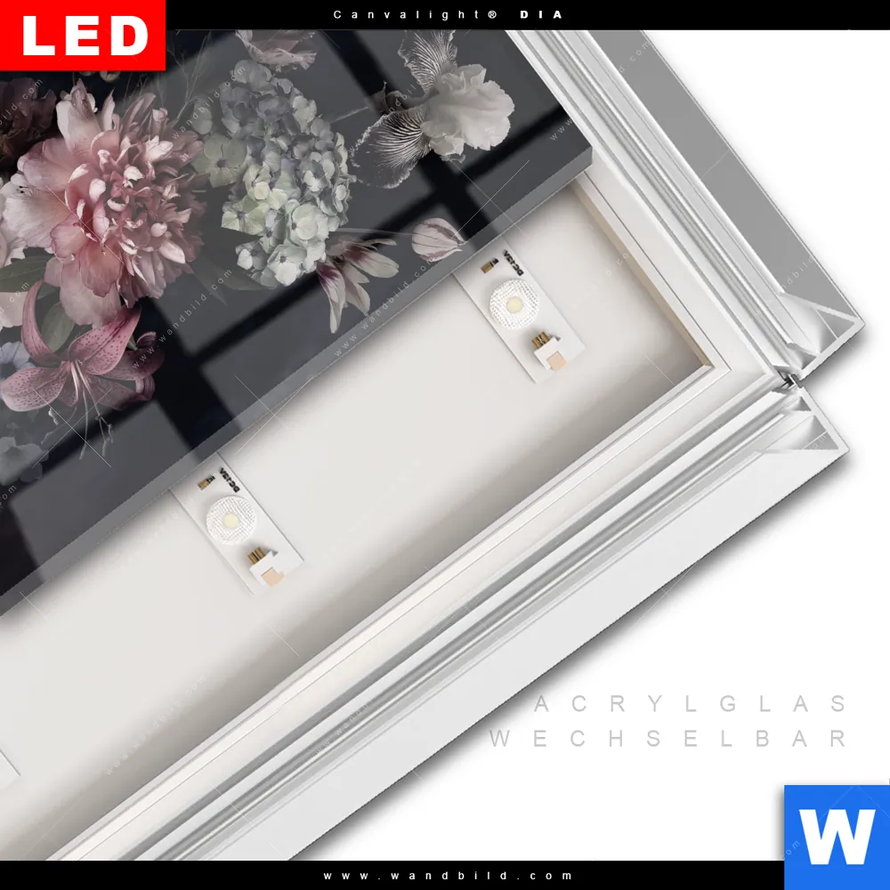 LED-Glasbild mit austauschbarem Acrylglas-Druck (Wechselbild)
