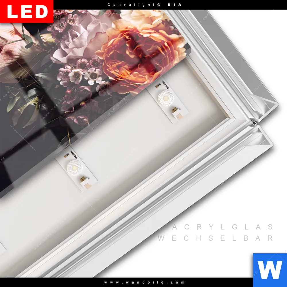 LED-Glasbild mit austauschbarem Acrylglas-Druck (Wechselbild)