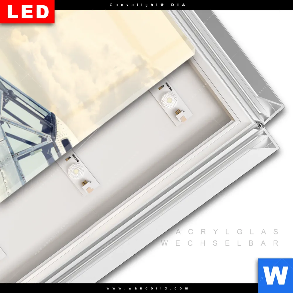 LED-Glasbild mit austauschbarem Acrylglas-Druck (Wechselbild)
