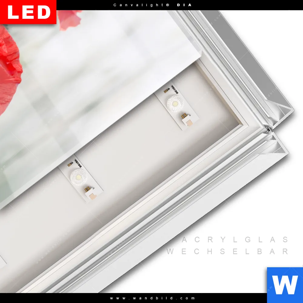 LED-Glasbild mit austauschbarem Acrylglas-Druck (Wechselbild)