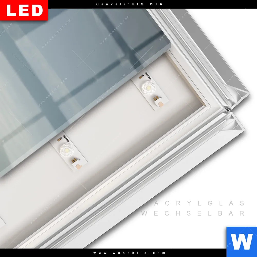 LED-Glasbild mit austauschbarem Acrylglas-Druck (Wechselbild)