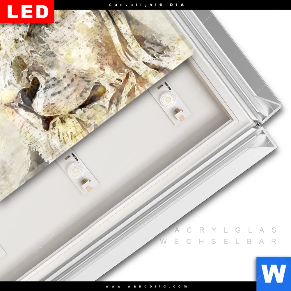 LED-Glasbild mit austauschbarem Acrylglas-Druck (Wechselbild)
