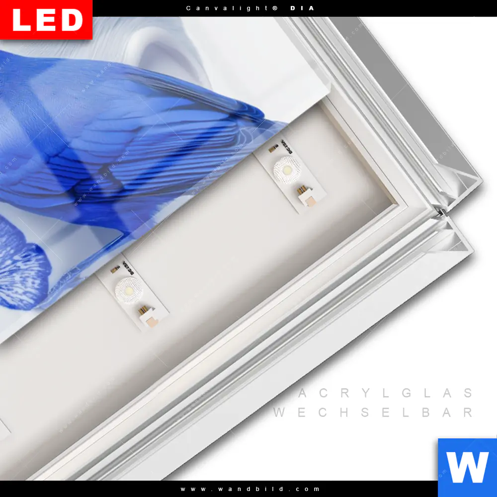 LED-Glasbild mit austauschbarem Acrylglas-Druck (Wechselbild)