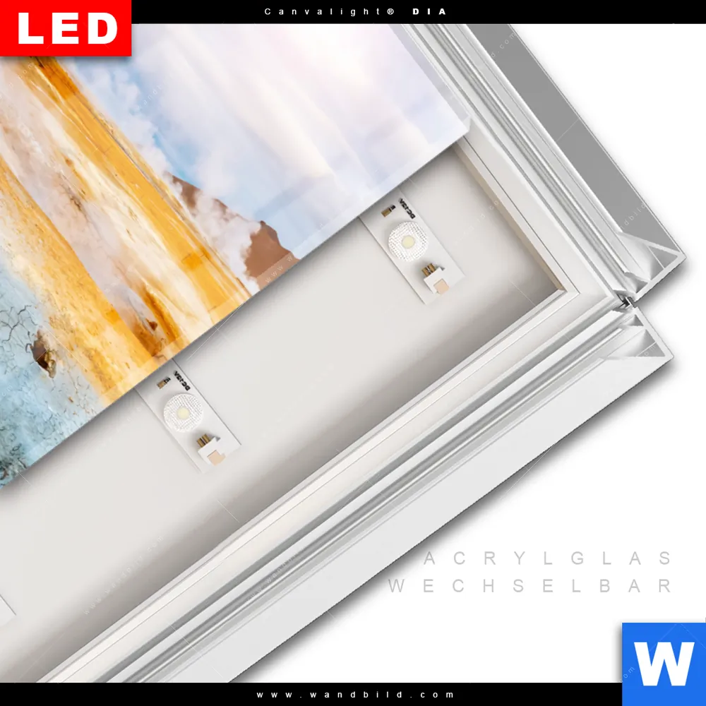 LED-Glasbild mit austauschbarem Acrylglas-Druck (Wechselbild)