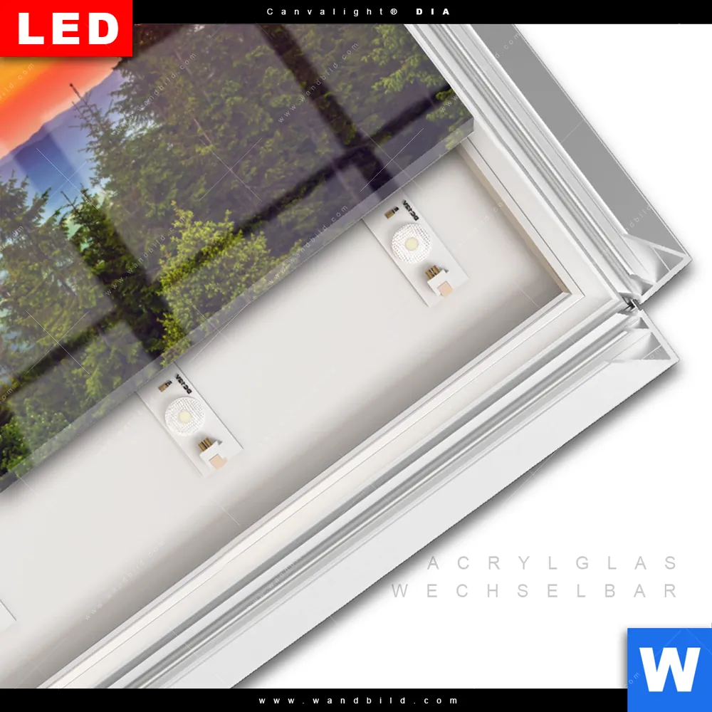 LED-Glasbild mit austauschbarem Acrylglas-Druck (Wechselbild)