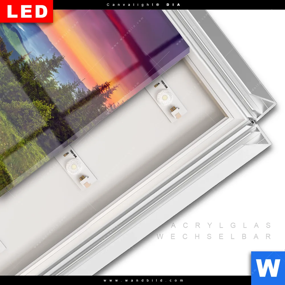 LED-Glasbild mit austauschbarem Acrylglas-Druck (Wechselbild)