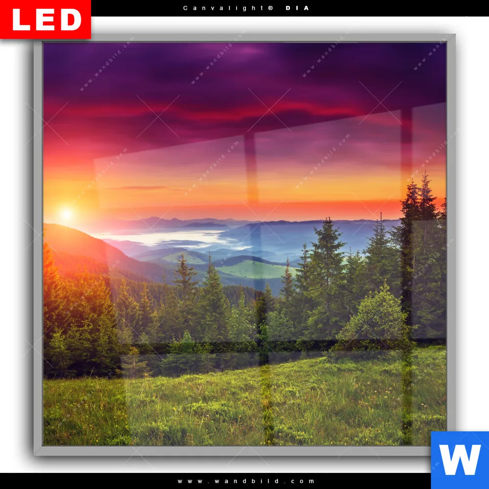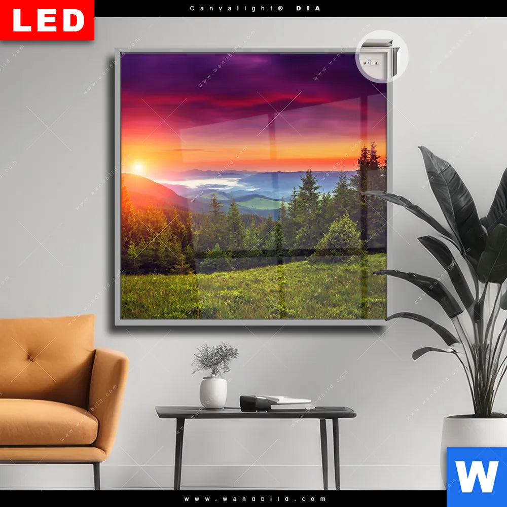 Canvalight® DIA Leuchtbild | Wald bei Sonnenuntergang | Quadrat