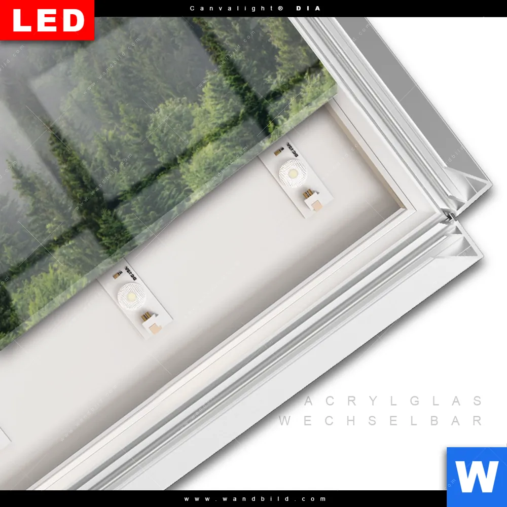 LED-Glasbild mit austauschbarem Acrylglas-Druck (Wechselbild)
