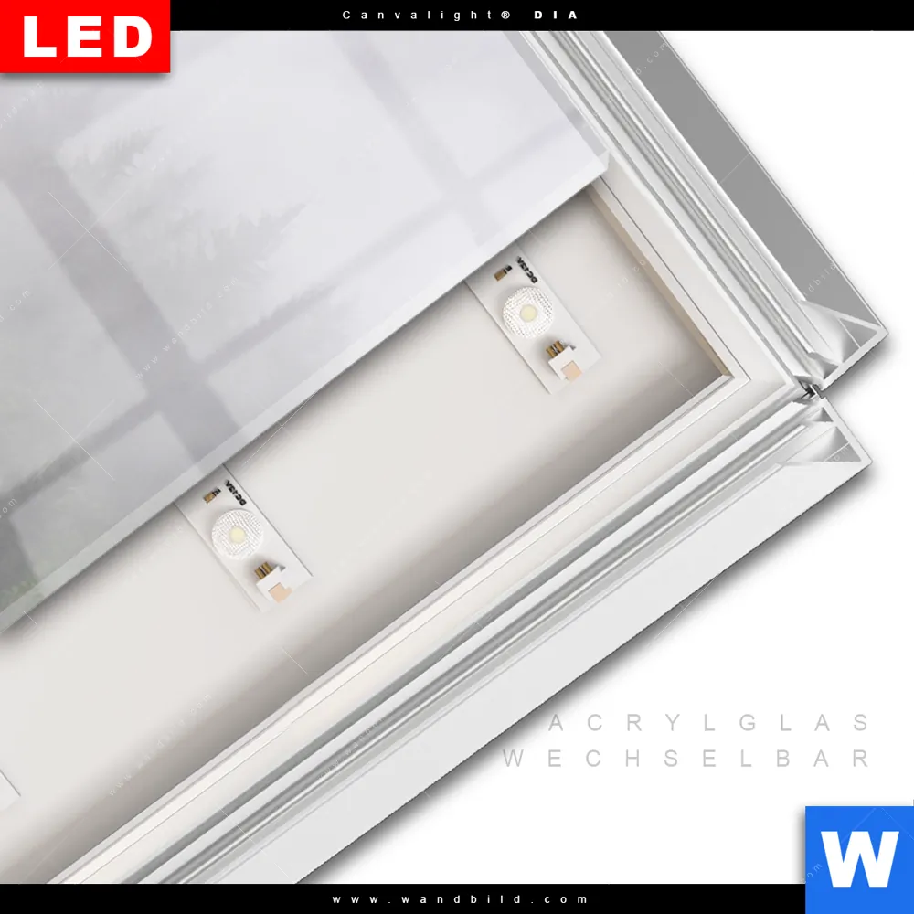 LED-Glasbild mit austauschbarem Acrylglas-Druck (Wechselbild)
