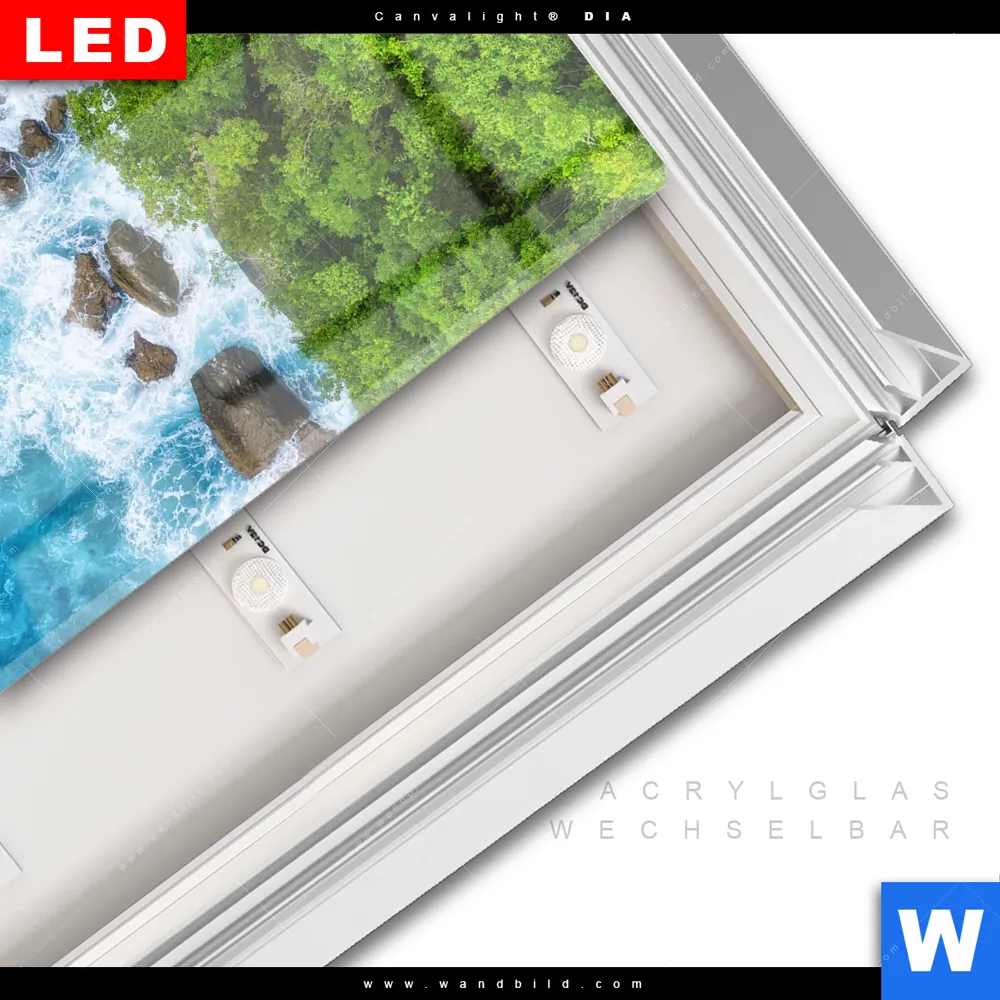 LED-Glasbild mit austauschbarem Acrylglas-Druck (Wechselbild)