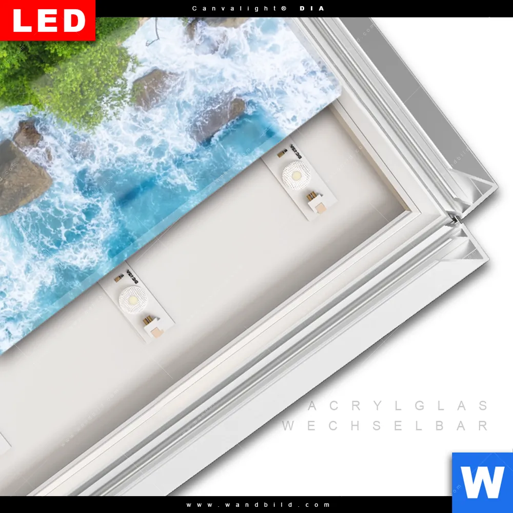 LED-Glasbild mit austauschbarem Acrylglas-Druck (Wechselbild)