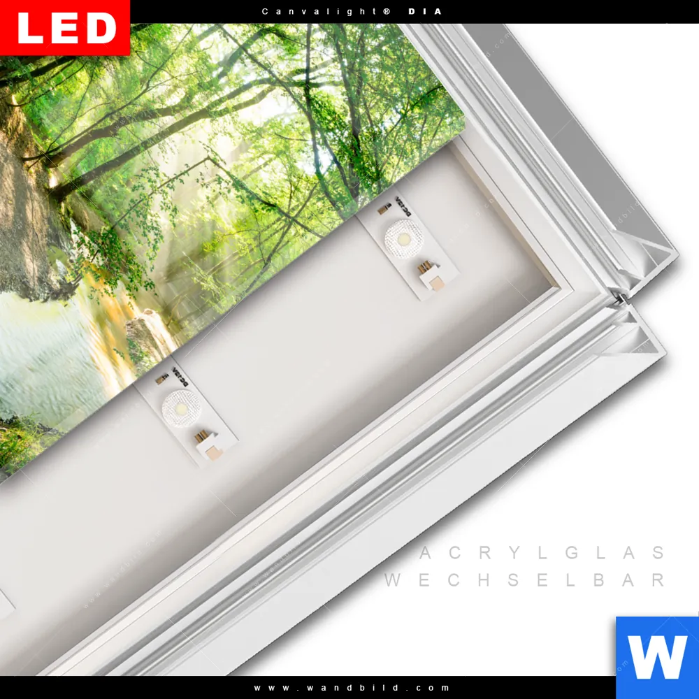 LED-Glasbild mit austauschbarem Acrylglas-Druck (Wechselbild)