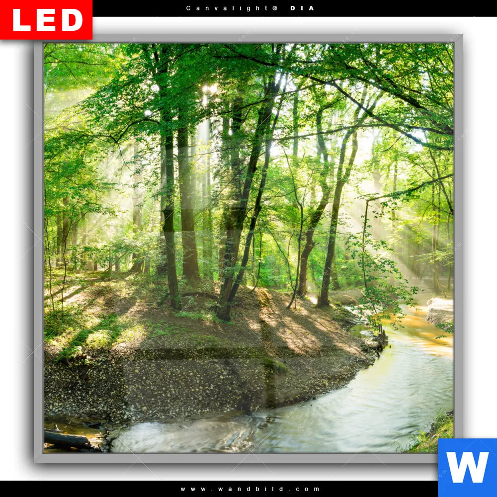 Canvalight® DIA Leuchtbild | Wald mit Bach | Quadrat