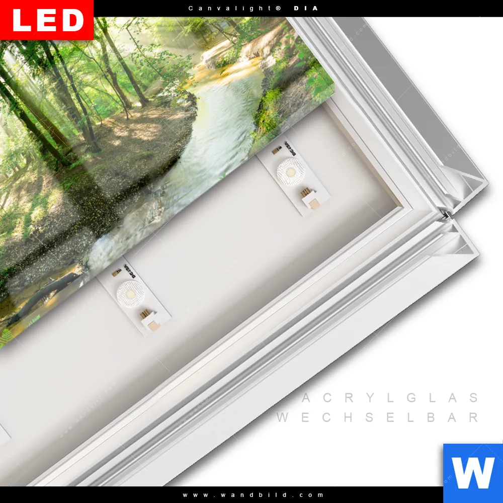 LED-Glasbild mit austauschbarem Acrylglas-Druck (Wechselbild)