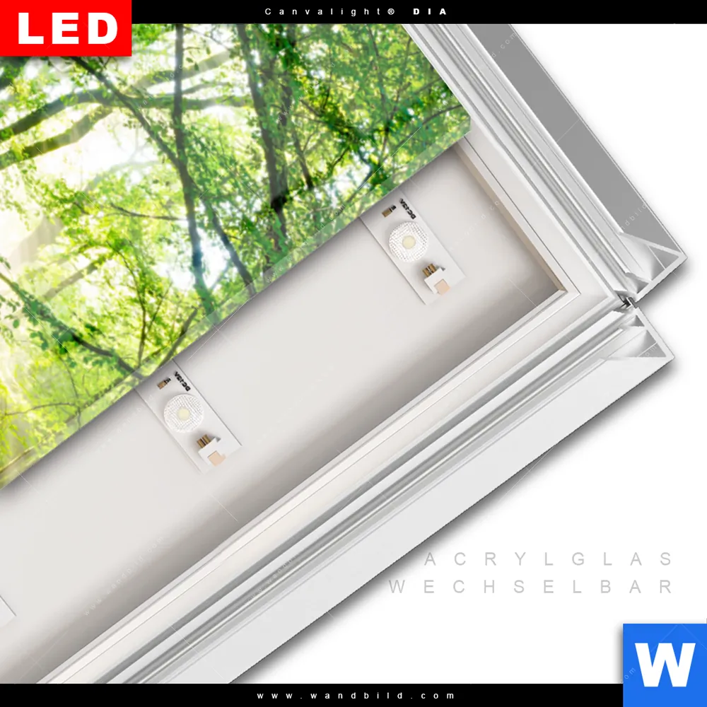 LED-Glasbild mit austauschbarem Acrylglas-Druck (Wechselbild)