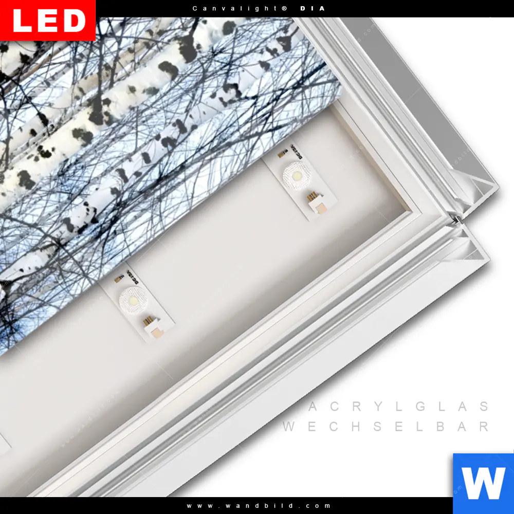LED-Glasbild mit austauschbarem Acrylglas-Druck (Wechselbild)