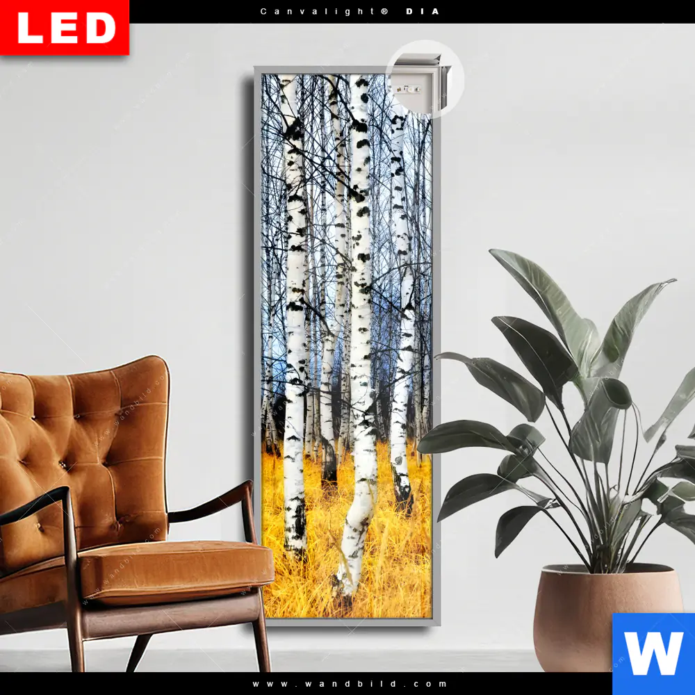 Canvalight® DIA Leuchtbild | Wald mit Birkenbäumen | Schmal