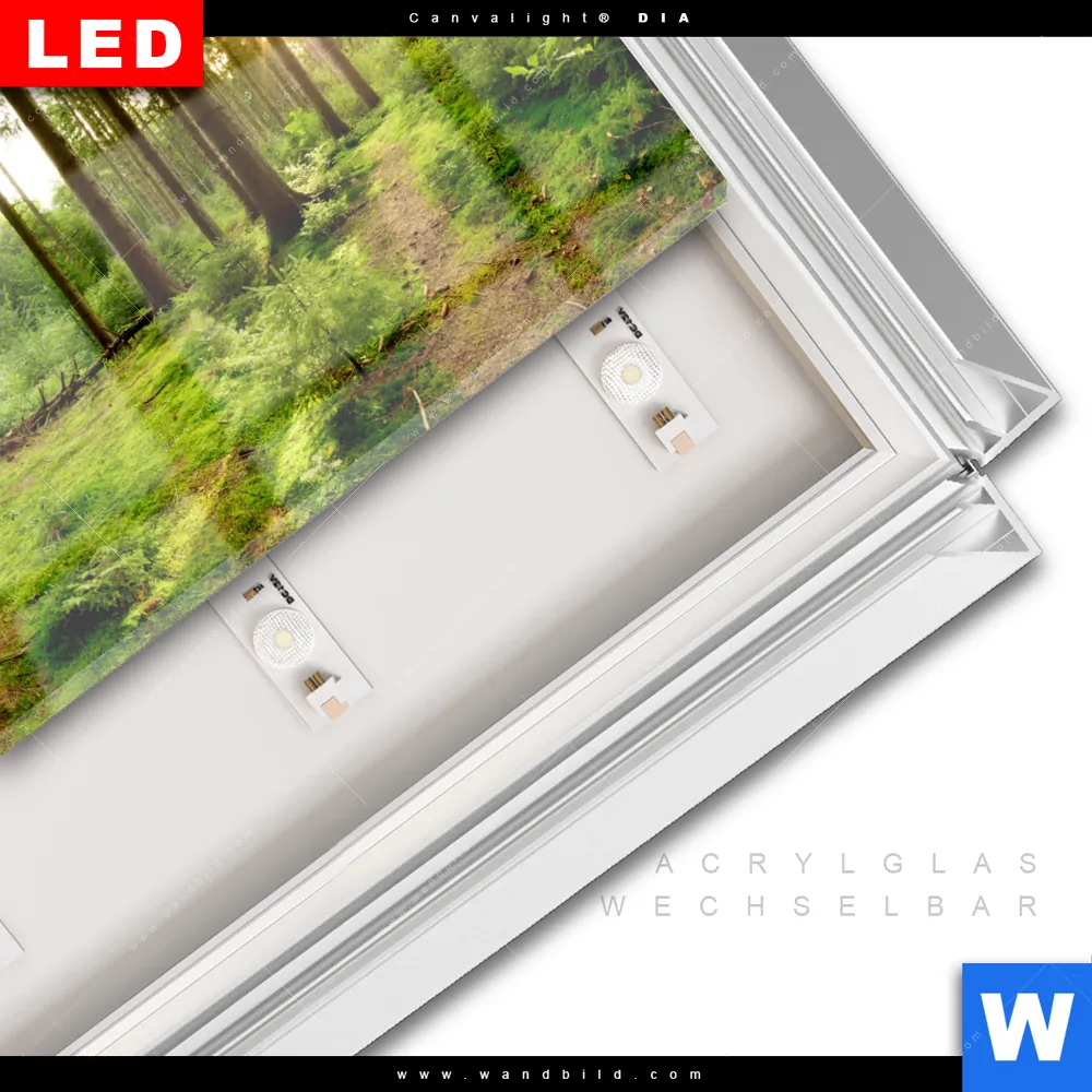 LED-Glasbild mit austauschbarem Acrylglas-Druck (Wechselbild)