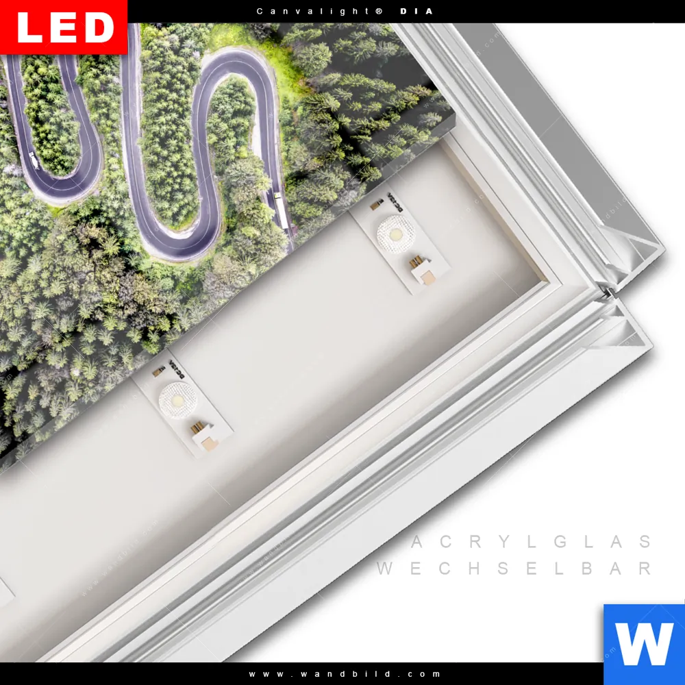 LED-Glasbild mit austauschbarem Acrylglas-Druck (Wechselbild)