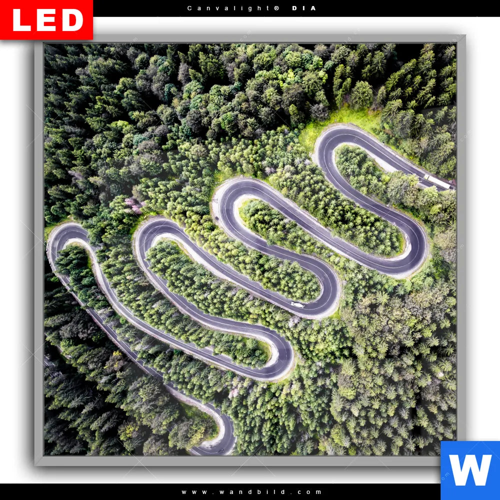 Canvalight® DIA Leuchtbild | Wald & Straße Luftaufnahme | Quadrat