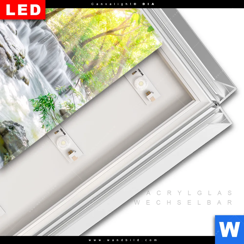 Canvalight® DIA Leuchtbild | Wald & Wasserfall No. 1 | Quadrat