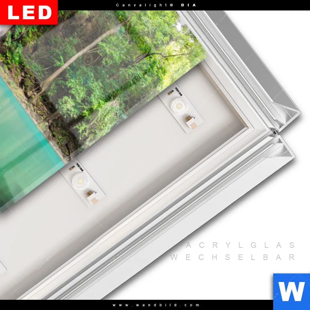 LED-Glasbild mit austauschbarem Acrylglas-Druck (Wechselbild)