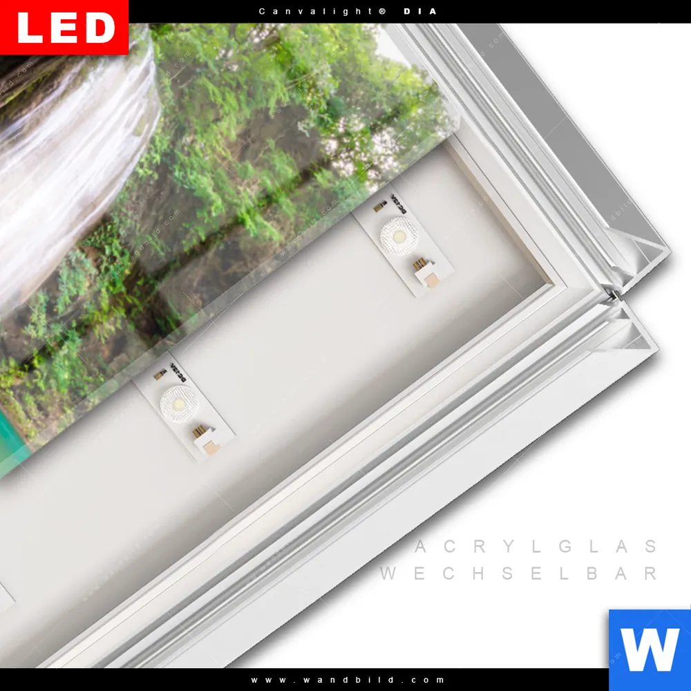 LED-Glasbild mit austauschbarem Acrylglas-Druck (Wechselbild)
