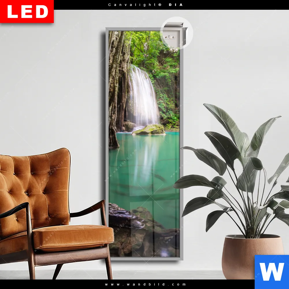 Canvalight® DIA Leuchtbild | Wald & Wasserfall No. 4 | Schmal