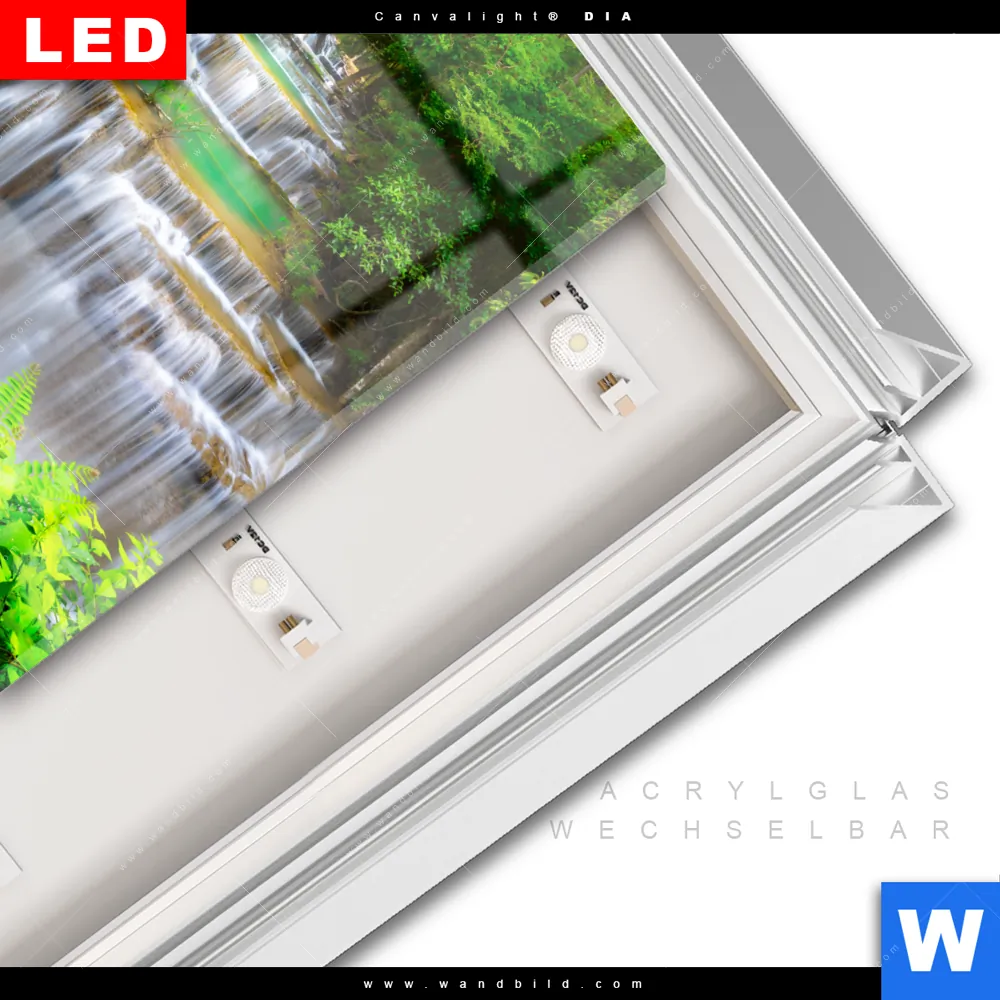 LED-Glasbild mit austauschbarem Acrylglas-Druck (Wechselbild)