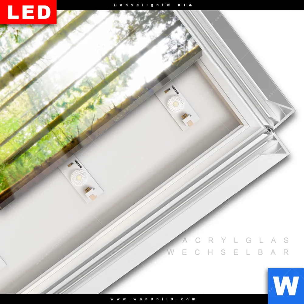 LED-Glasbild mit austauschbarem Acrylglas-Druck (Wechselbild)