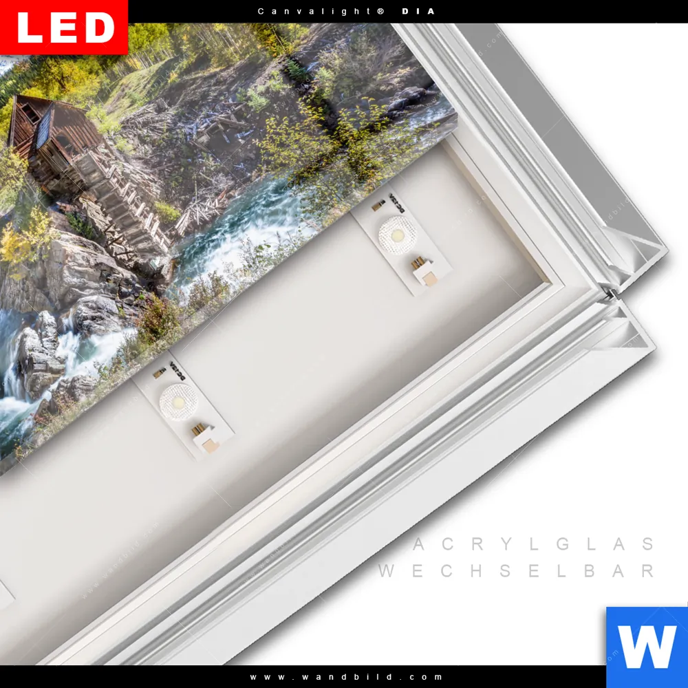 LED-Glasbild mit austauschbarem Acrylglas-Druck (Wechselbild)