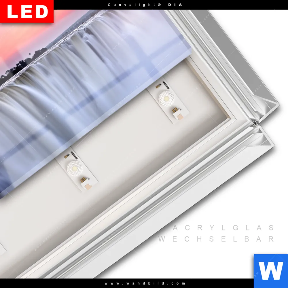 LED-Glasbild mit austauschbarem Acrylglas-Druck (Wechselbild)