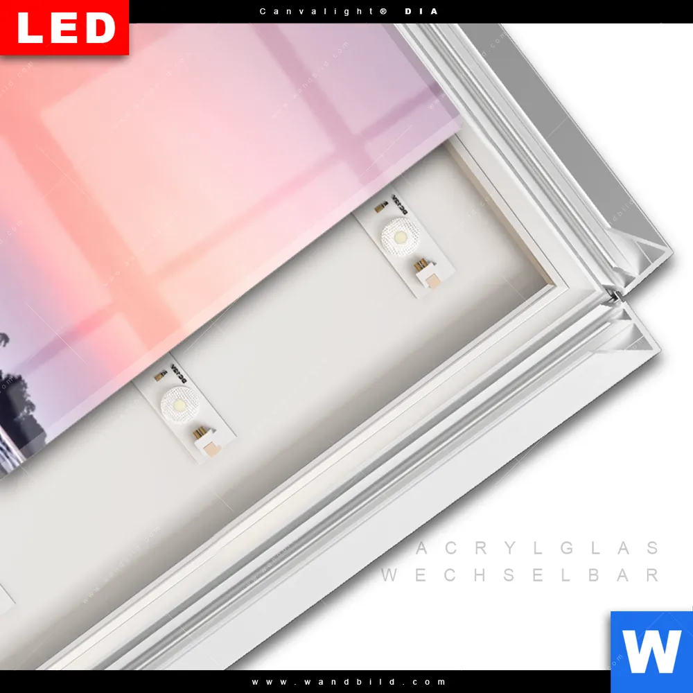 LED-Glasbild mit austauschbarem Acrylglas-Druck (Wechselbild)