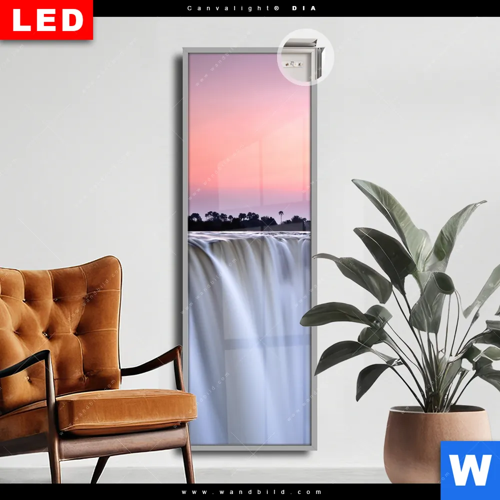 Canvalight® DIA Leuchtbild | Wasserfall bei Abendröte | Schmal
