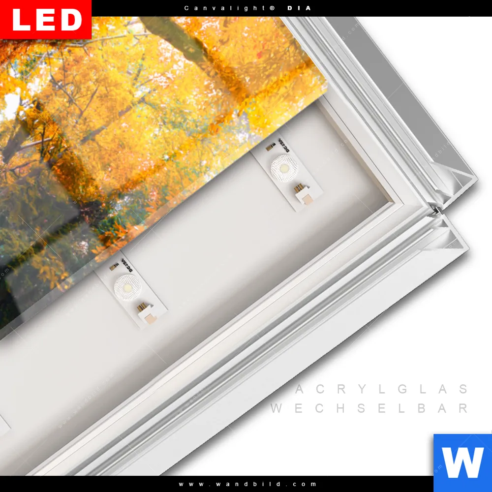 LED-Glasbild mit austauschbarem Acrylglas-Druck (Wechselbild)