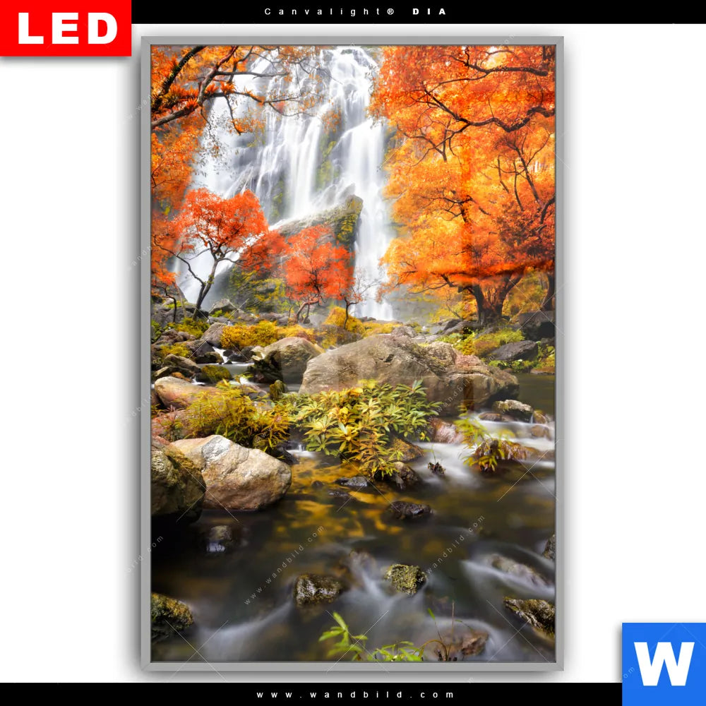 Canvalight® DIA Leuchtbild | Wasserfall in Herbstlandschaft | Hochformat