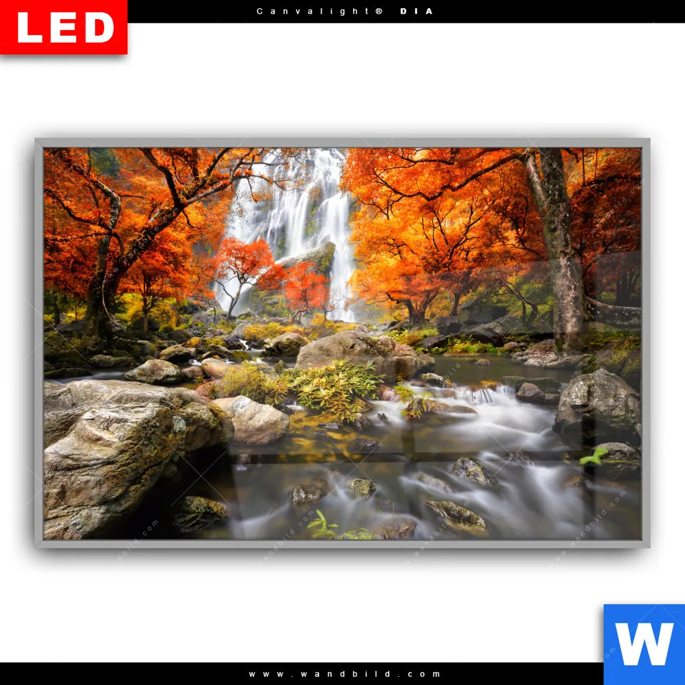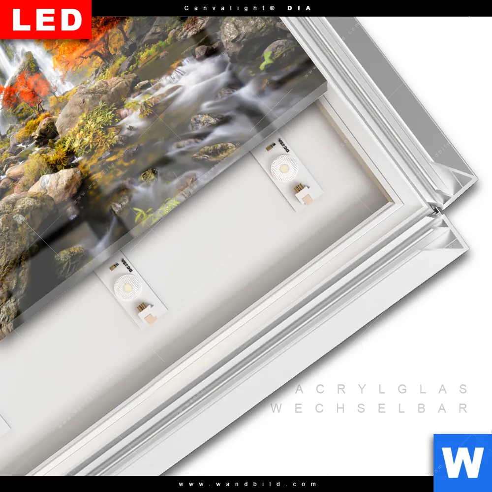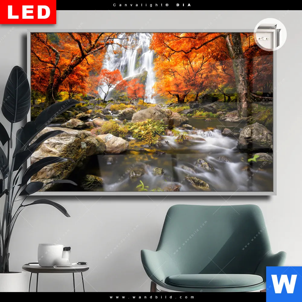Canvalight® DIA Leuchtbild | Wasserfall in Herbstlandschaft | Querformat