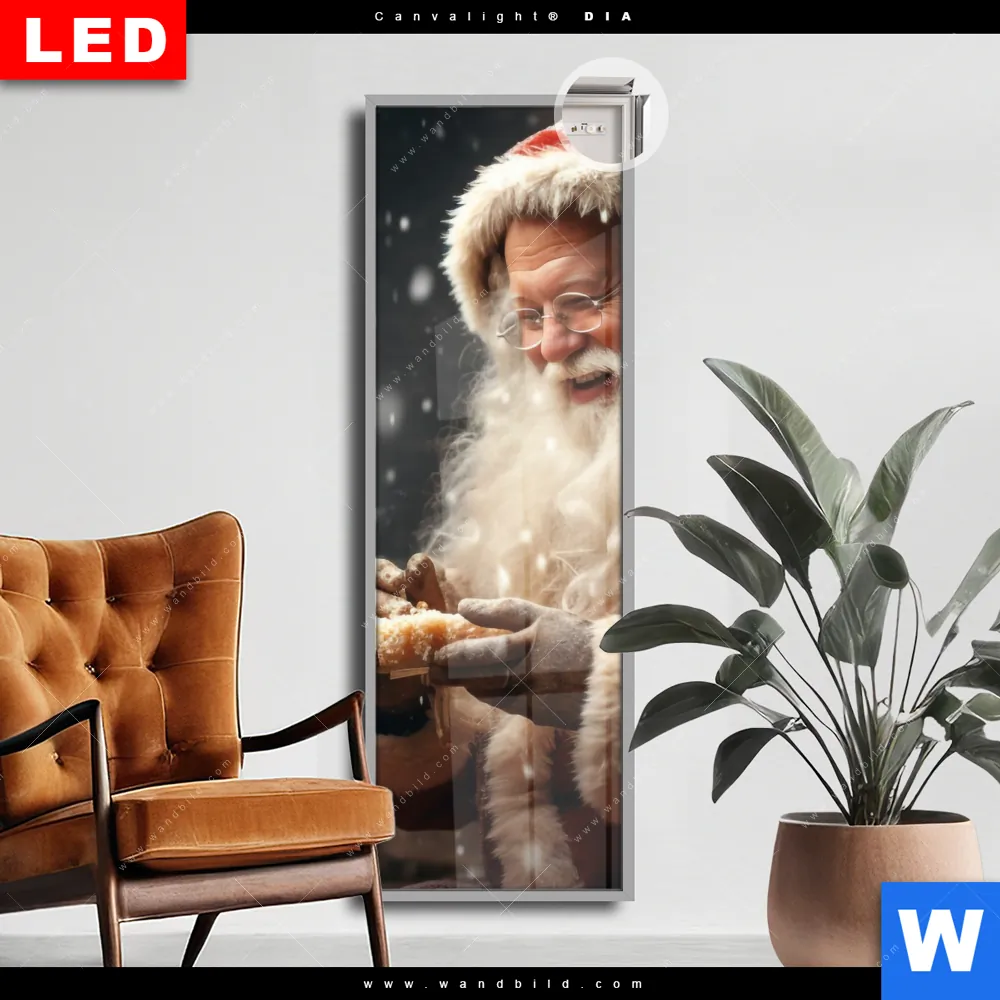 Leuchtbild Acrylglas Canvalight® DIA | Weihnachtsmann füttert Rentier | Schmal