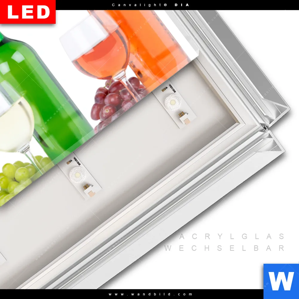 LED-Glasbild mit austauschbarem Acrylglas-Druck (Wechselbild)