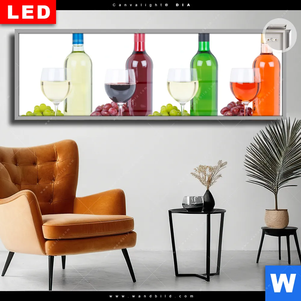 Canvalight® DIA Leuchtbild | Wein in Flaschen und Gläsern | Panorama