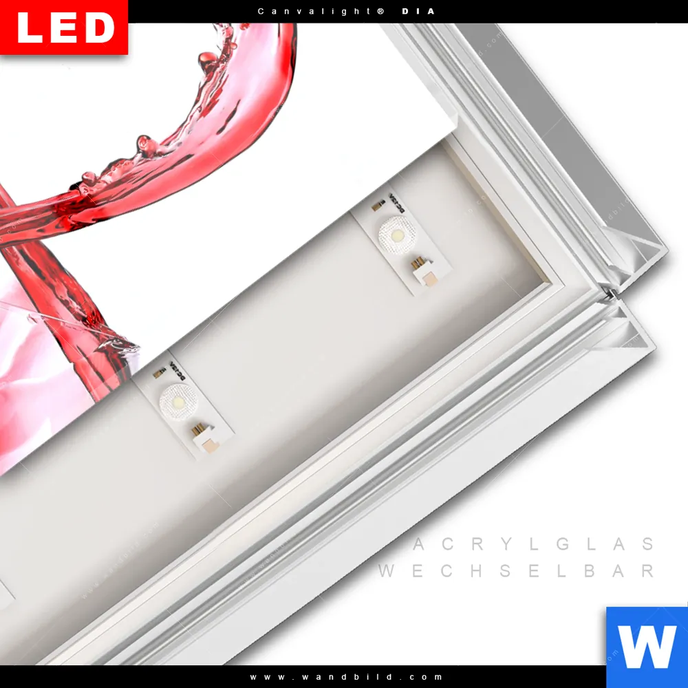 LED-Glasbild mit austauschbarem Acrylglas-Druck (Wechselbild)