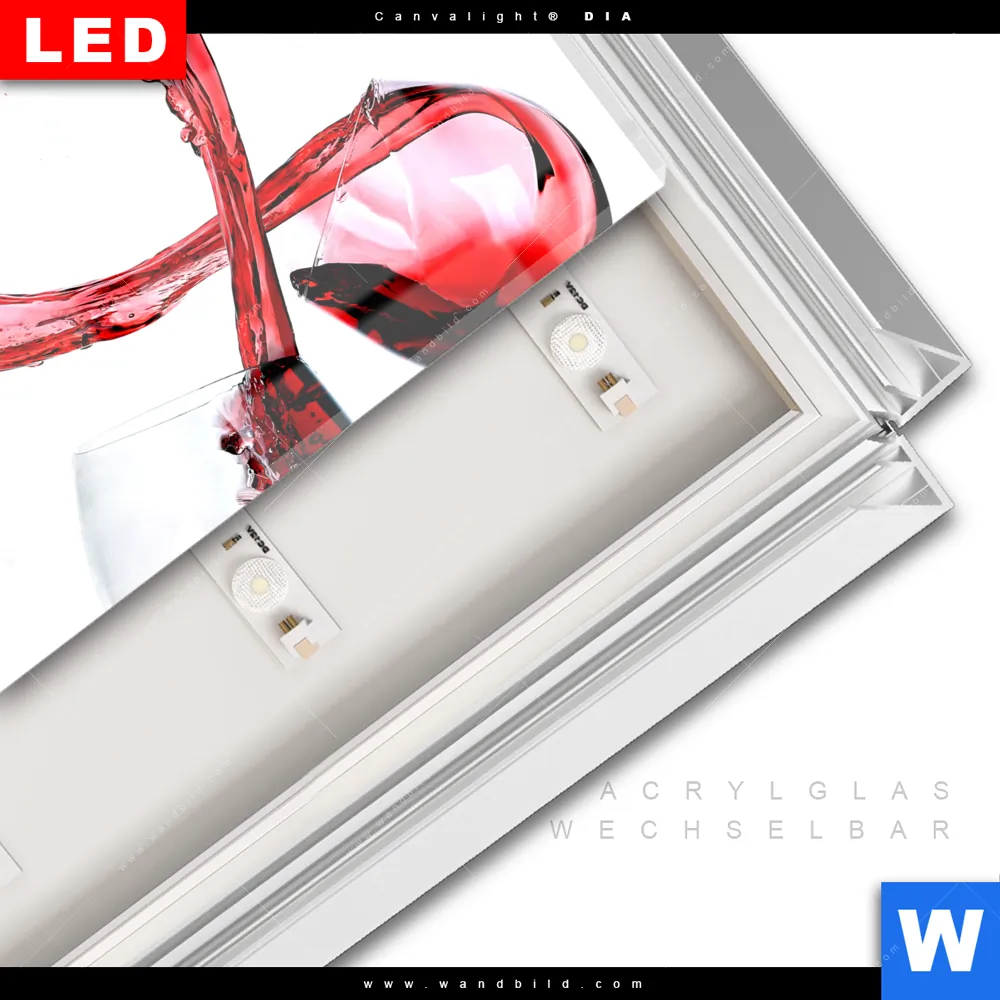 LED-Glasbild mit austauschbarem Acrylglas-Druck (Wechselbild)